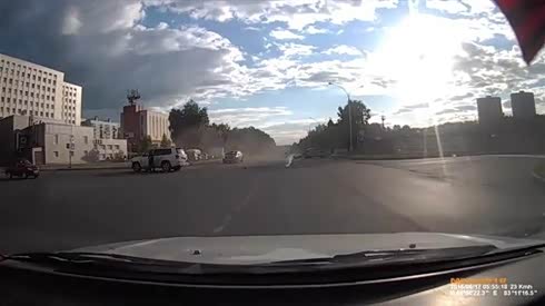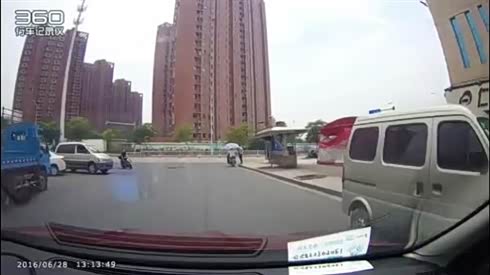 着什么急!鲁莽摩托闯灯后猛烈撞击