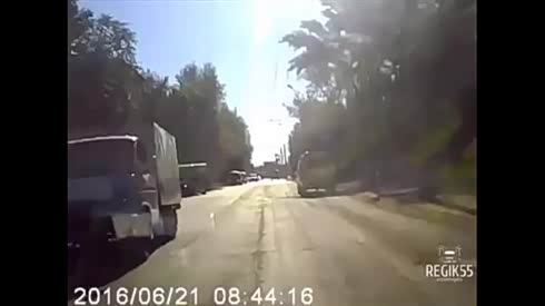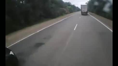 冷汗不断 自己摔倒的摩托司机险遭碾压