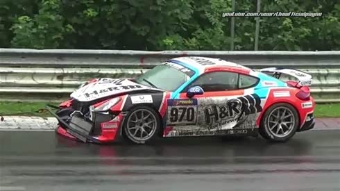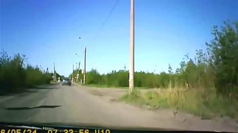 一头栽进木丛 飞速行驶的轿车冲出马路