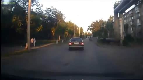 摩托车吓趴 摄像车行驶途中突然转弯