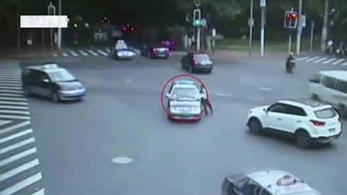 行为不理智 司机驾出租车闹市拖行交警