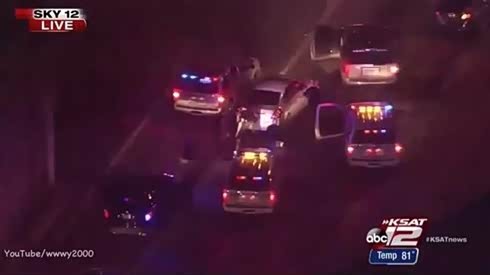 现场在线 夜晚航拍警车追击嫌犯车辆