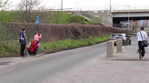 吓死人的节奏 摄像车撞倒窜出的行人