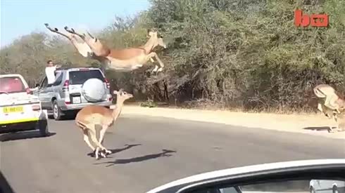 慌不择路 鹿被豹子追杀钻车内逃过一劫