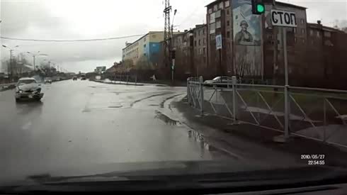 使劲踩也没用 小轿车急刹躲避失控撞车