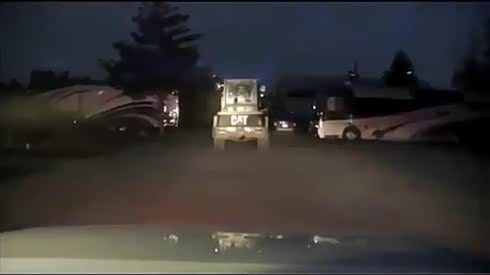 无惧警告 警车追击公路上狂飙的装载机