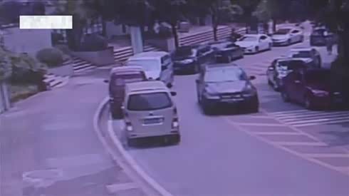 司机太大意 面包车忘拉手刹溜车酿事故