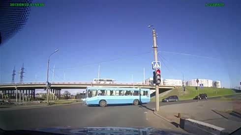 这么急干嘛?小轿车闯红灯撞到公交车