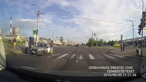 慢点不行吗 骑自行车男子被轿车撞翻