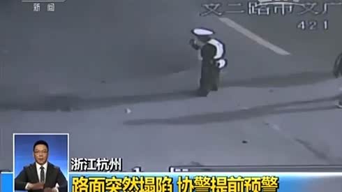杭州协警挺身拦车 身后地面瞬间塌陷