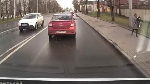 真是够危险 机动车失控差点撞到路人