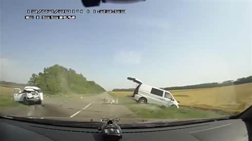 两车报废了 摄像车实拍两车迎面相撞