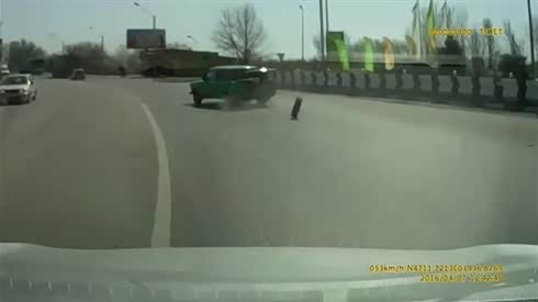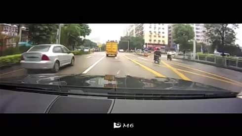 逆行惹祸 实拍摩托车被机动车撞翻倒地