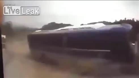 险些丧命 实拍大客车高速摧毁小巴车