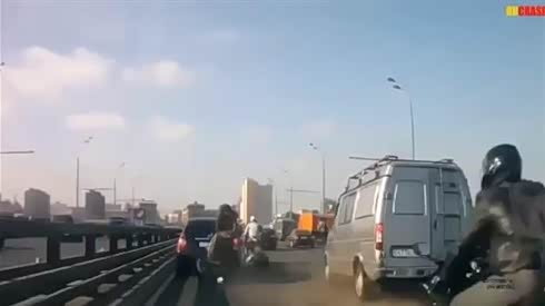 大难不死 屌丝骑摩托车钻到了货车轮下