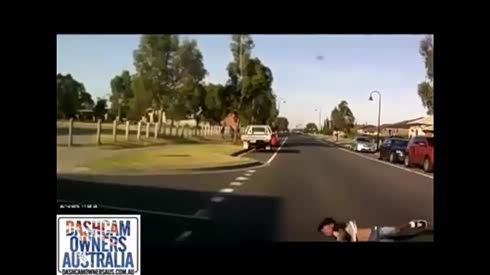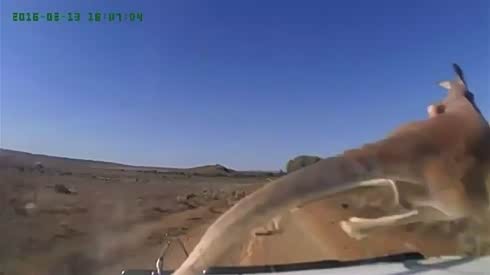 天线被撞折了!汽车驾驶途中突遇袋鼠