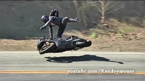 摔得好惨 骑大排量摩托车山路劈弯失败