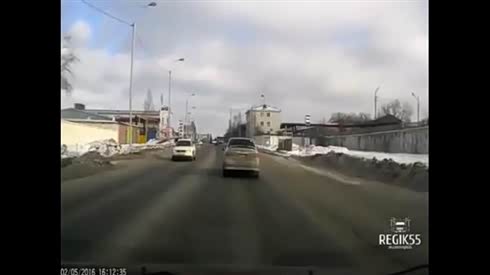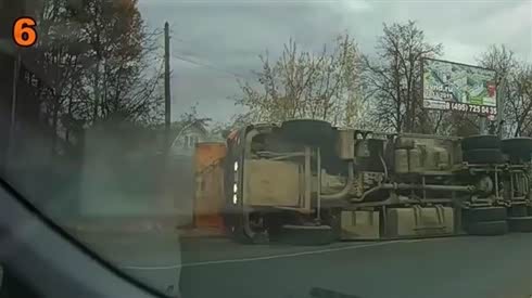 疲劳驾驶太危险 看小汽车冲出马路翻车