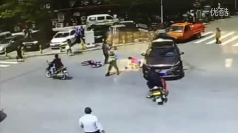 路口惊魂 小孩从自行车上掉落遭辗压