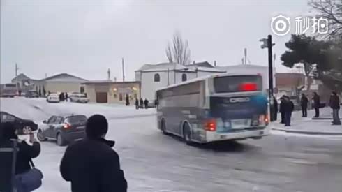 现场一片混乱 路面结冰后多车失控打滑