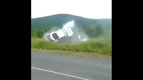 估计报废了 实拍GT-R推头冲出路面翻车