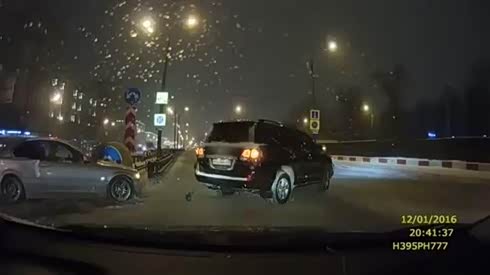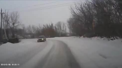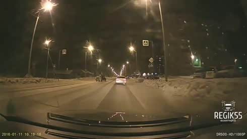 黑灯瞎火撞傻了!实拍黑夜雪地车祸