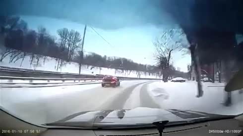 雪天还开那么快?实拍鲁莽轿车失控