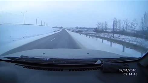 还想开多快?汽车雪天超车时不幸失控