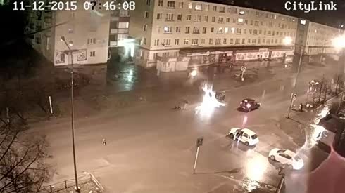 真是心惊肉跳 监控实拍战斗民族车祸