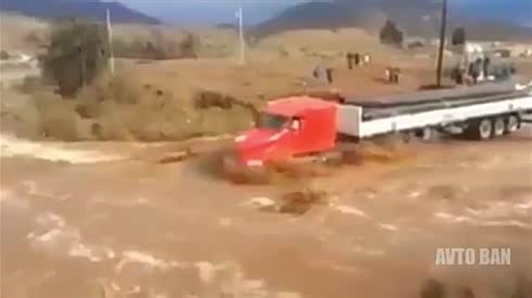 真心吊爆了 任性大卡车勇闯洪水路段