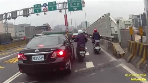 着哪门子急呢 无脑司机强行并道惨被挤