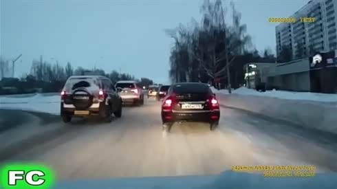实在是幸运 小轿车雪天失控险撞车友