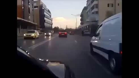 自认倒霉吧 车友一路狂奔被拦腰猛撞