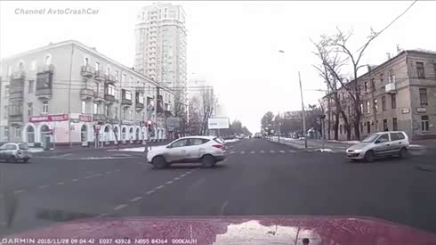 谁都没刹车 实拍十字路口两车急速猛撞