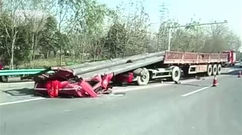 相煎何太急 货车急刹致货物冲毁驾驶室