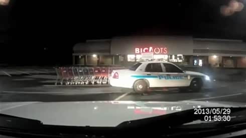 太搞笑 实拍美国警察“顺走”超市推车