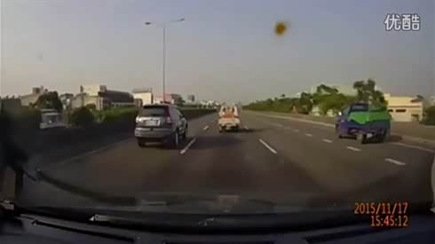真是吓一跳 路遇对向小货车跳跃隔离带