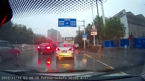 吓死人 宝马摩托240km/h急刹 撞上轿车