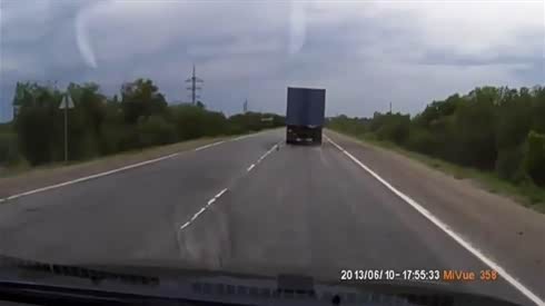 高速开车 卡车突然掉落轮胎 差点要命!