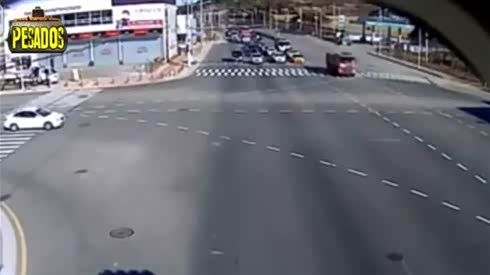 真命大!渣土车路口相撞 差点活埋轿车
