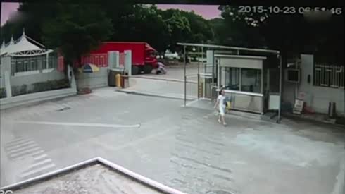 深圳大货车转弯碾压骑车女子和小孩瞬间