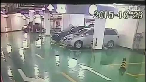 这样也能撞!女司机停车场连撞两车