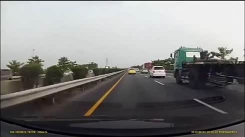 大货车强行并线 小车只能吃灰