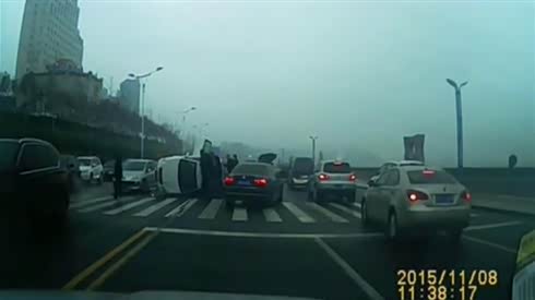 太有爱了 女司机失控翻车 众人出手相助