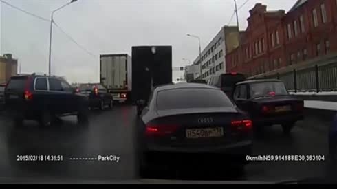 战斗民族 奥迪司机扎你轮胎没商量 你挡我视线了...