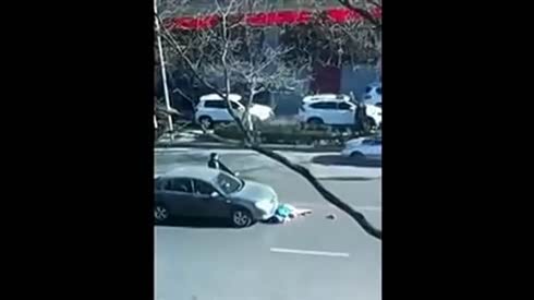 美女“碰瓷”全过程 突然扑向车头后倒地