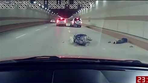 疲劳驾驶 小车撞碎摩托 三人被腾空撞飞...
