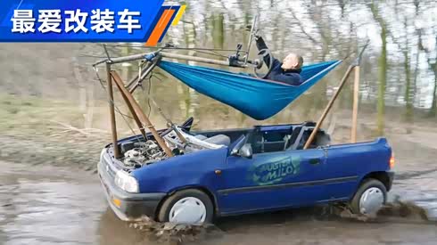 他一边躺在吊床上一边潇洒的开车
