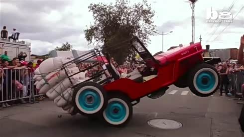哥伦比亚街头实拍重载吉普车表演超高技巧 - 车头跳