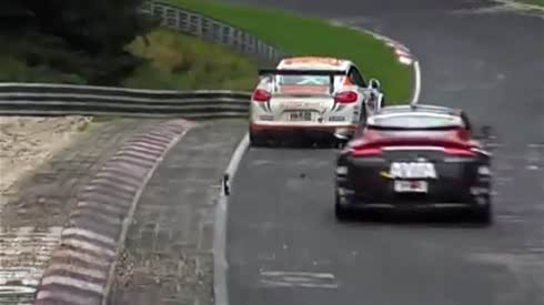 实拍:纽北保时捷Porsche Cayman GT4过弯滑出赛道 险撞上人群...